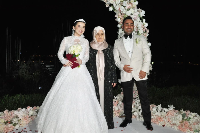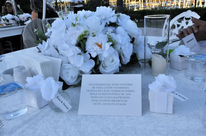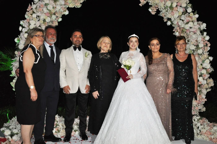 Didim D-Marin Yacht Club’ta gerçekleştirilen nikâh töreninde Aileler konuklarını kapıda karşılayarak hoş geldiniz dedile.