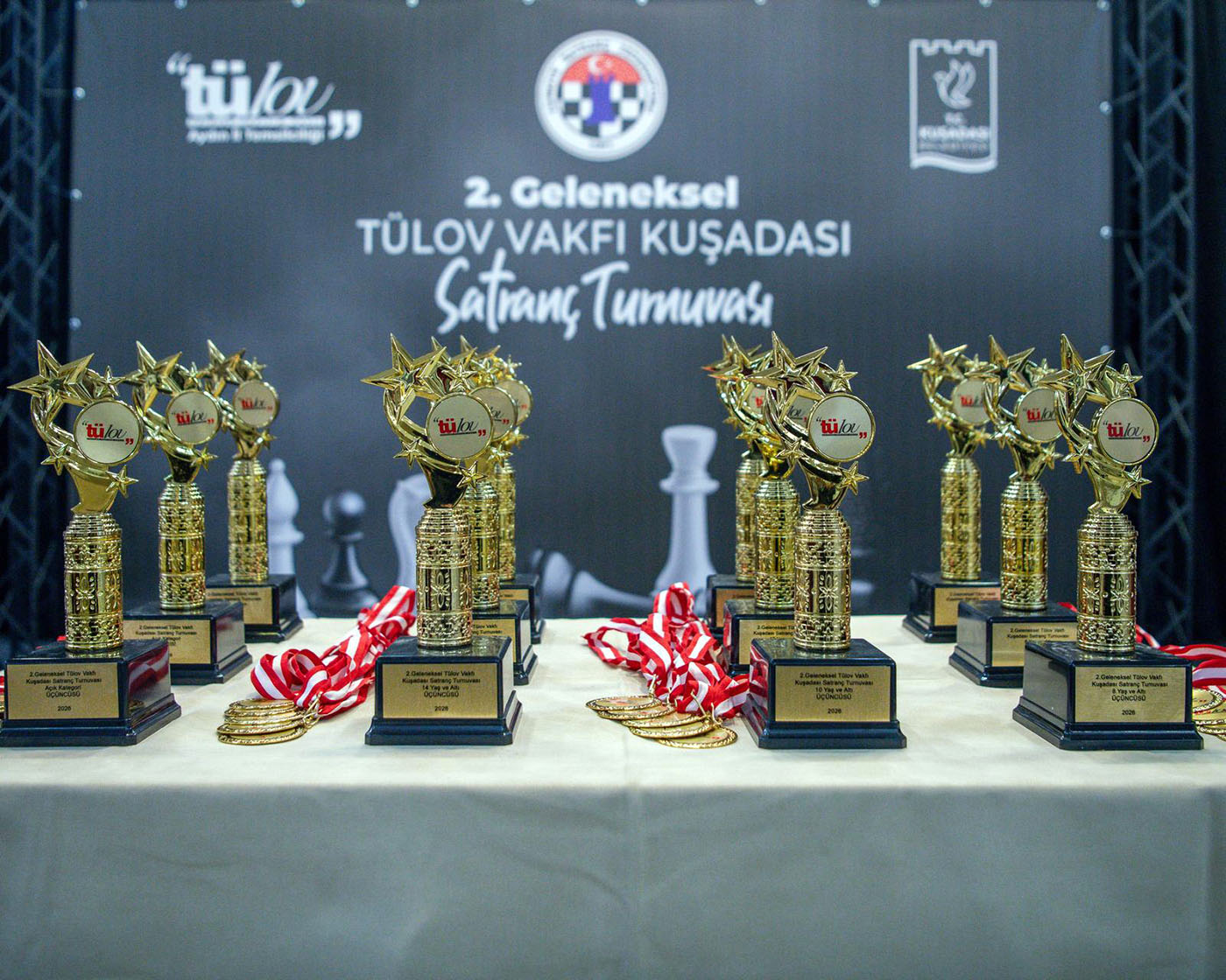Kuşadası’nda, Türkiye Tanıtım Araştırma Demokrasi ve Laiklik Oluşum Vakfı (TÜLOV) Aydın İl Temsilciliği, Türkiye Satranç Federasyonu (TSF) ve Kuşadası Belediyesi tarafından düzenlenen ‘2’nci Geleneksel TÜLOV Vakfı Kuşadası Satranç Turnuvası’ sona erdi. Türkiye genelinden 110 sporcunun katıldığı turnuvada, dereceye girenlere ödülleri Kuşadası Belediye Başkan Vekili Tahsin Demirtaş ve protokol üyeleri tarafından verildi.