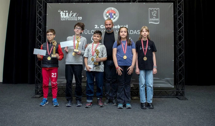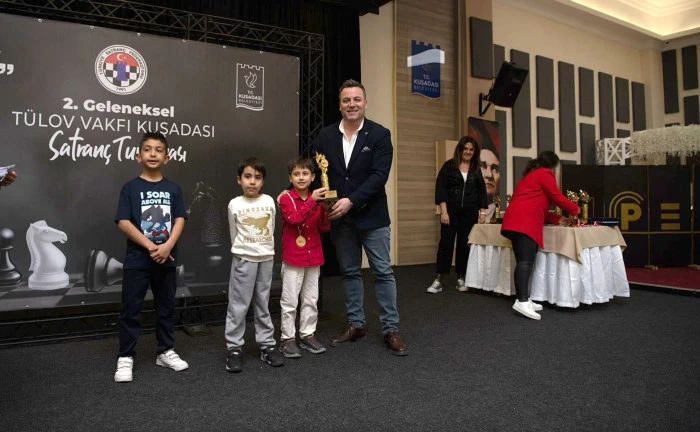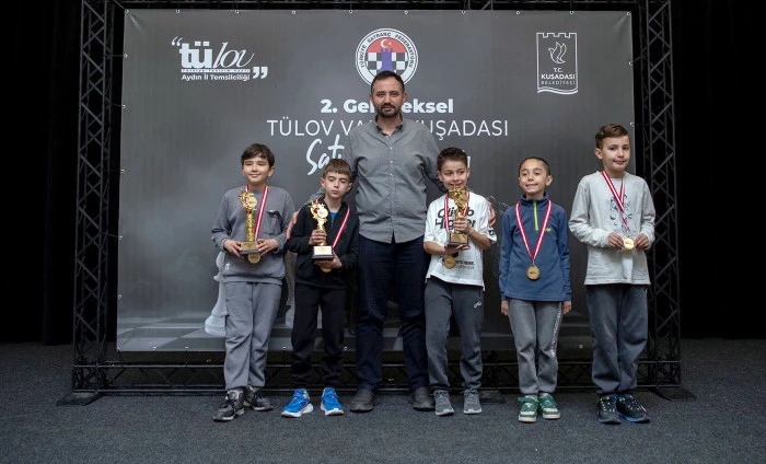 Pera Kültür, Düğün ve Organizasyon Merkezi’nde cumartesi günü başlayan 2’nci Geleneksel TÜLOV Vakfı Kuşadası Satranç Turnuvası tamamlandı. Açılış hamlesini Kuşadası Belediye Başkan Vekili Tahsin Demirtaş’ın yaptığı turnuvaya 8, 10, 14 yaş altı ve açık kategorileri olmak üzere Türkiye genelinden 110 sporcu katıldı. 31 bin 500 lira para ödülün dağıtıldığı turnuvada maçlar kıran kırana geçti. Turnuva sonunda dereceye giren sporculara kupa ve madalyaları, Kuşadası Belediyesi Başkan Vekili Tahsin Demirtaş, TÜLOV Vakfı İzmir İl Temsilcisi Seyit Ahmet Akyüz, TÜLOV Vakfı Aydın İl Temsilciliği Yönetim Kurulu Üyesi Tuğçe Ölkü ve Türkiye Satranç Federasyonu Kuşadası İlçe Temsilcisi Halil Yüce Bilici tarafından verildi.