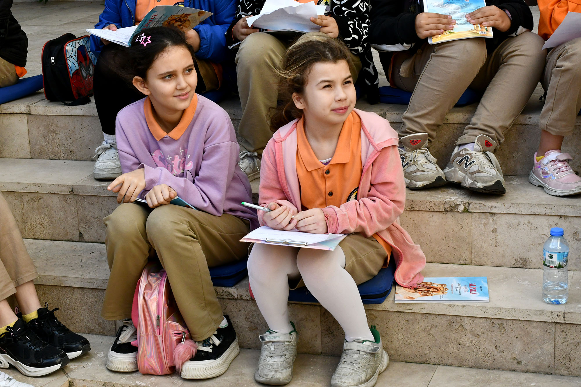 Arife Bayram Bayözlü Ortaokulu öğrencilerinin katıldığı etkinlikte, yazar Tolga Mert çocuklara tarih öğretmenin en kalıcı yollarından birinin hikâye anlatımı olduğunu vurgulayarak kitapta işlediği temaları paylaştı. Etkinlik boyunca çocuklar, Efes Antik Kenti’nin simge yapılarından olan Celsus Kütüphanesi’nde geçen “ Alinda Keşifte” adlı kitapla, tarihte yolculuğa çıktı.