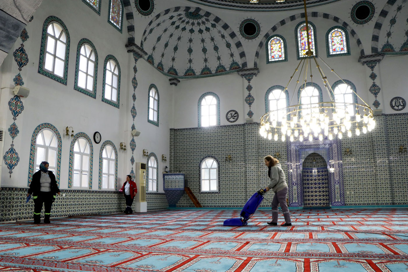 Ekipler tarafından cami içi ve çevresinde genel temizlik yapılırken; halılar süpürülüp, camlar siliniyor, bahçe bölümlerinde şadırvan alanlarında da temizlik uygulamaları gerçekleştiriliyor.