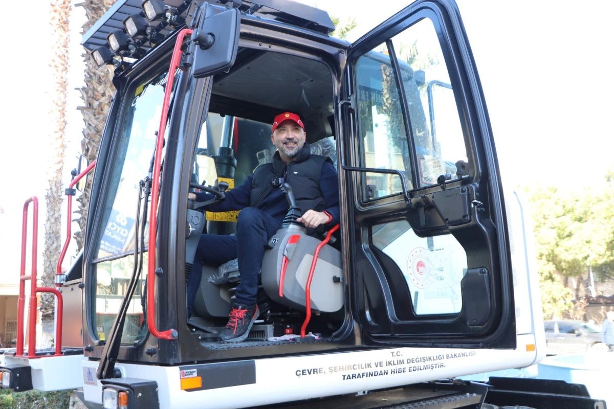 Çevre, Şehircilik ve İklim Değişikliği Bakanlığı tarafından hibe edilen ekskavatör Söke Belediyesi'ne teslim edildi