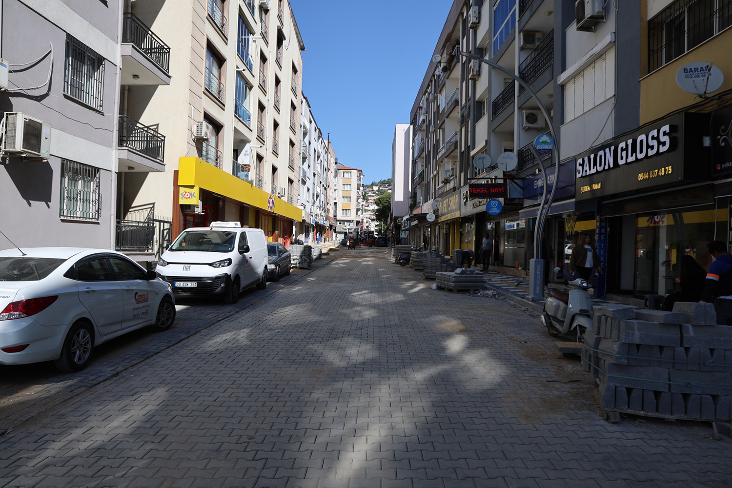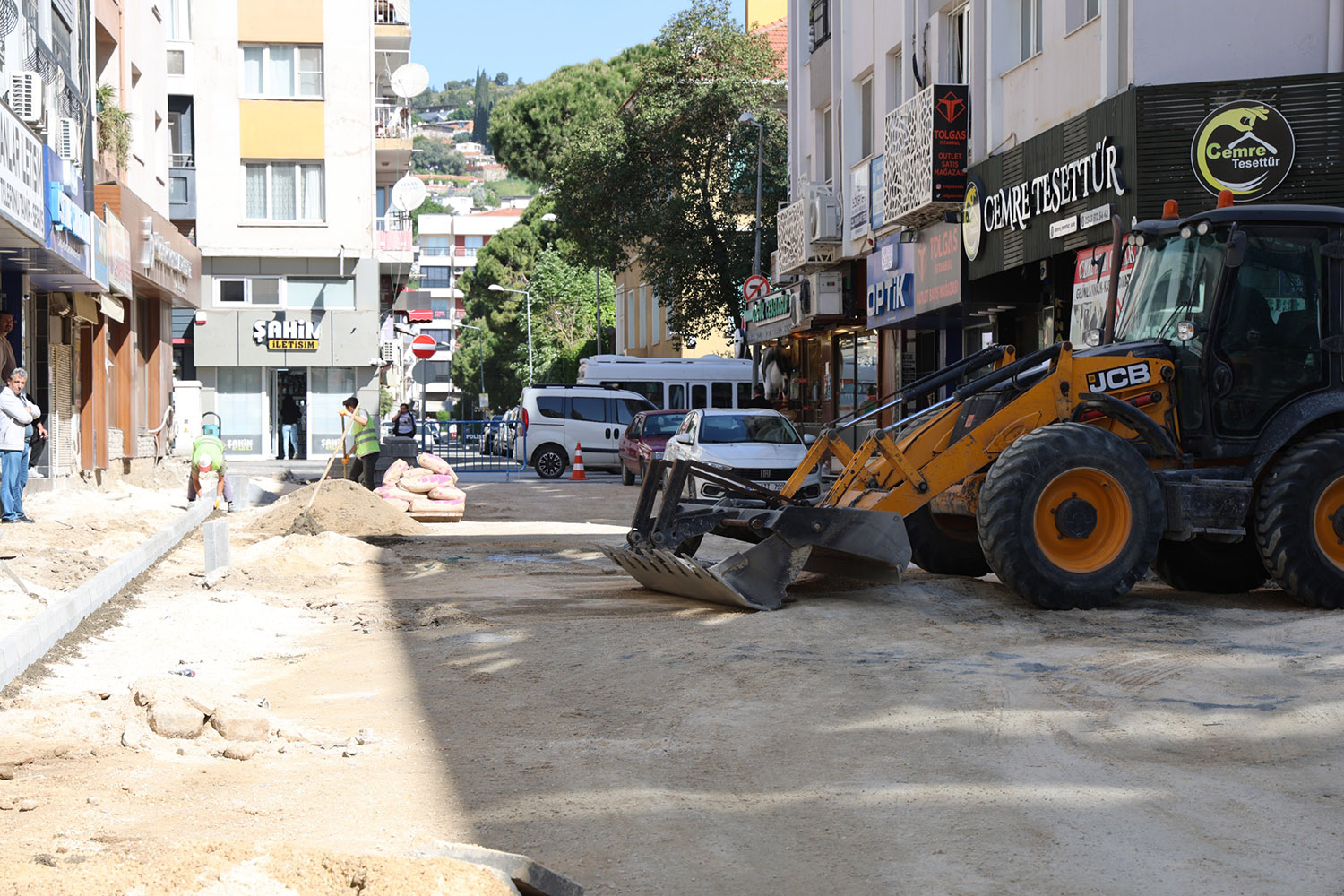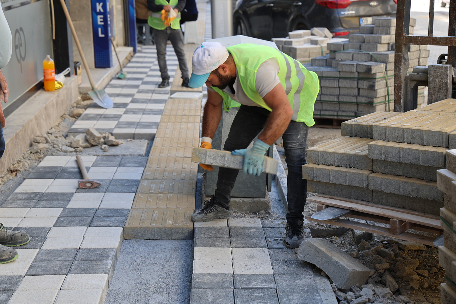eski yol kaplamaları sökülerek yerine dayanıklı parke taşları döşenirken; kaldırımlar da baştan sona yenileniyor.