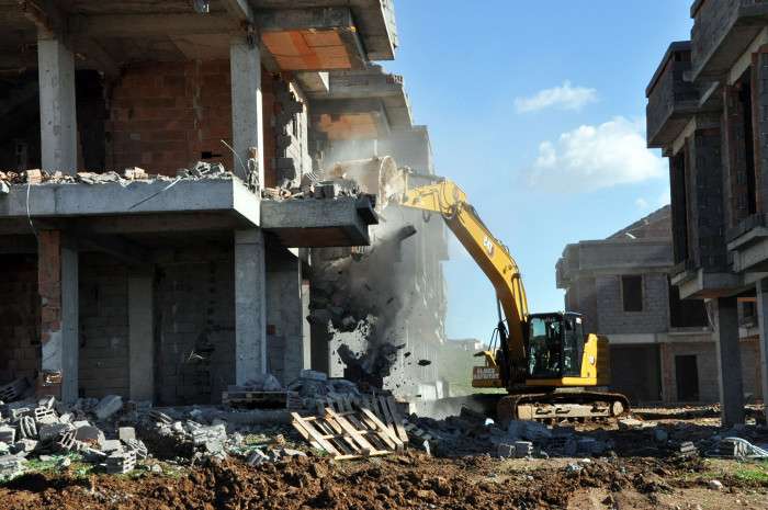 Didim’in hisar mahallesi 2420 sokak, 1043 Ada, 4 parselde, Didimli bir İnşaat firması tarafından, 8 blok 36 Bağımsız bölümden oluşan sitenin kaba inşaatı bitmiş olan binaların yıkımı gerçekleştirildi.