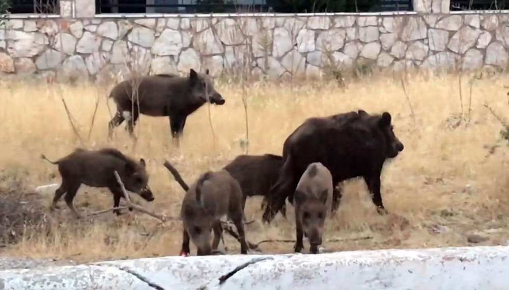 Yavruları ile birlikte site içlerindeki bahçelerde, cadde ve sokaklarda gezen domuzlar, çöp konteynerlerinin etrafında ve evlerin bahçelerinde yiyecek ve su arıyorlar.